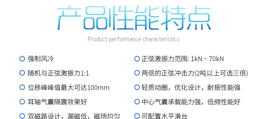 激振力范圍從1kN到70kN,最大負載從70kg到1000kg,頻率范圍:5-4000Hz,支持X.Y.Z垂直+水平多方向試驗,