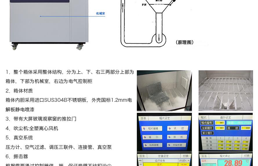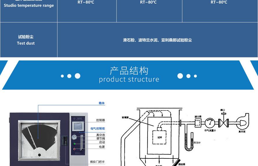 產品型號:JQD-800 品牌:劍 喬 用途:沙塵試驗箱學名為“砂塵試驗箱”,用來類比自然界風沙氣候環境對產品的破壞性,適用于檢測各種汽車零部件密封件、電子電工產品、機械電氣設備等產品的外殼密封性能